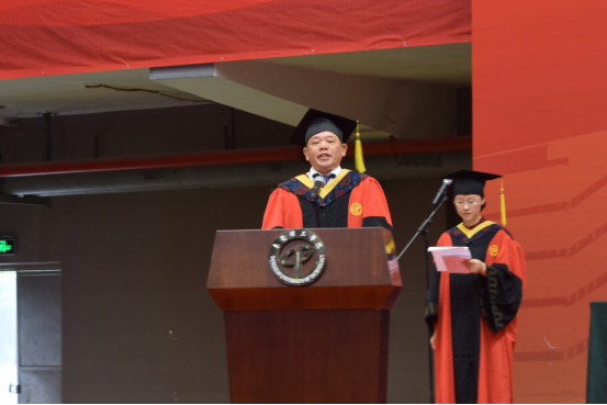 2019届毕业生黄政作为毕业生代表发言,表示一定铭记恩师的教导和“学而知不足”的校训,运用所学的专业技能,书写灿烂人生。