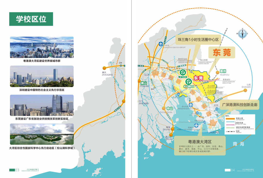 现有松山湖、莞城两个校区,其中松山湖校区坐落在松山湖高新技术产业开发区大学路1号,占地1800多亩(含370亩国际合作创新区);莞城校区坐落在莞城区公司路251号,占地330多亩。